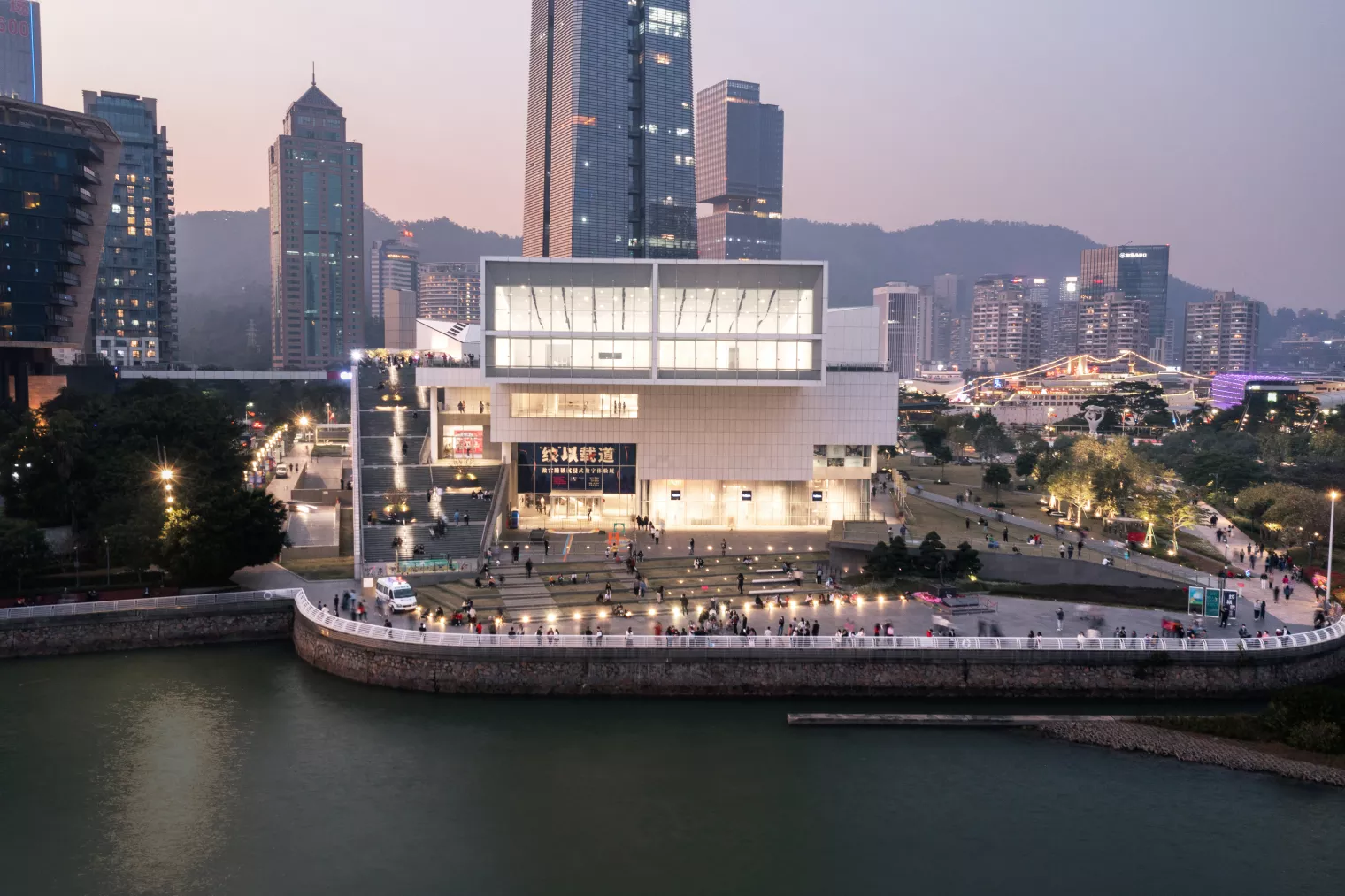 展馆面海背山倚城,由国际知名设计师槇文彦主持设计,是他在中国的第一个也是目前唯一的项目,2017年开馆即成为蛇口乃至深圳的新文化地标。