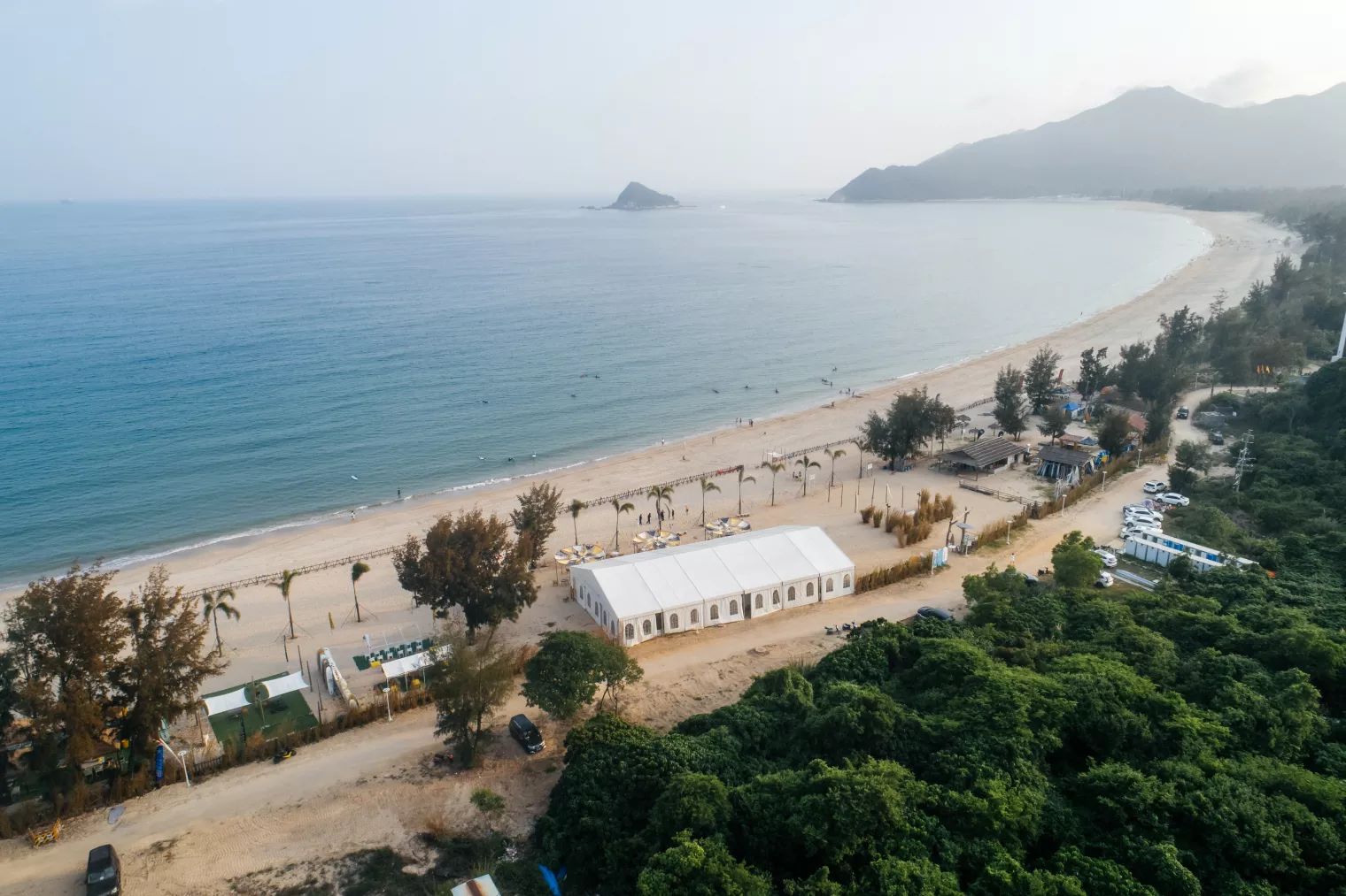位于大鹏半岛南澳镇最南端,拥有深圳最长的沙滩,与山、海、湖、岬角相映成趣。深圳第一家(2017年创办)集专业冲浪教学、主题客栈、餐吧、冲浪店为一体的综合俱乐部,离岸风(OFFSHORE WIND)便在此落脚。